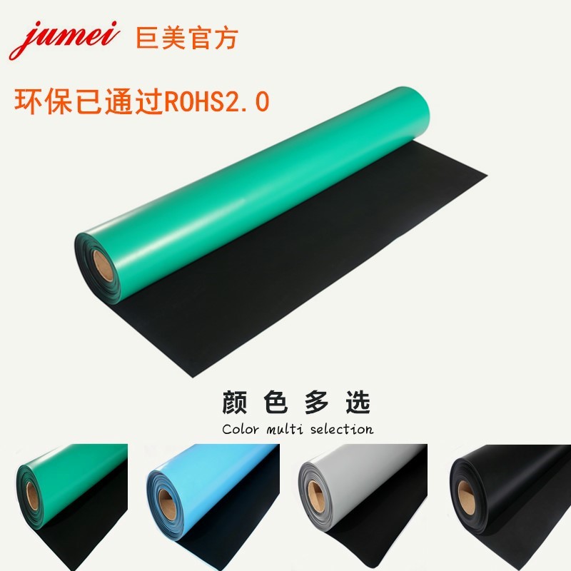 防靜電臺墊主要用抗(導)靜電材料和耗散靜電材料合成橡膠等制做而成。表面層為約 0 5mm 厚的耗散靜電層,底層為約 1 5mm 厚的導電層。